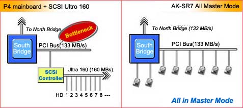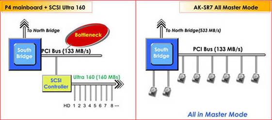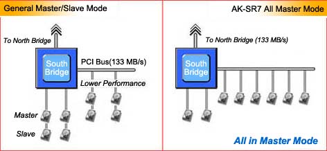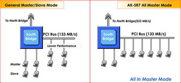 - AK-SR7 has 10 IDE channels, therefore all hard drives could be connected in Master mode. This will greatly enhance read/write performance.