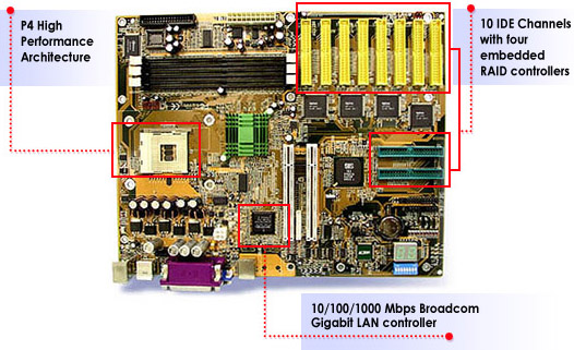 | Provide | 4 hard IDE RAID controllers, enable fast and effectient disk data snd efficient disk data transfer and redundant solution. |