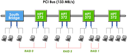 - you require high data transfer rate, you can set all IDE channels in Master mode to construct RAID 0 or RAID 5 disk array. If you need higher storage capacity, you can use both Master and Slave mode
