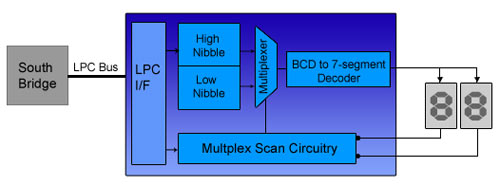 | Debug port built in with BCD-to-7 segment decoders/drivers |